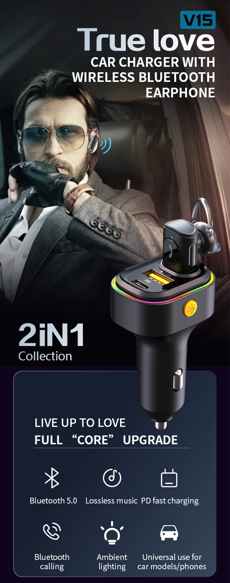 Car charging Bluetooth headset