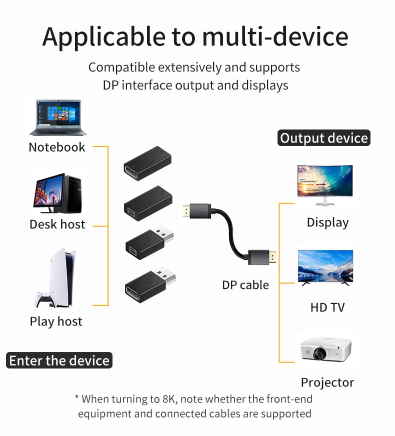 7. A wide range of compatibility, support DP interface output and monitors, such as notebook computers, desktop computers, game