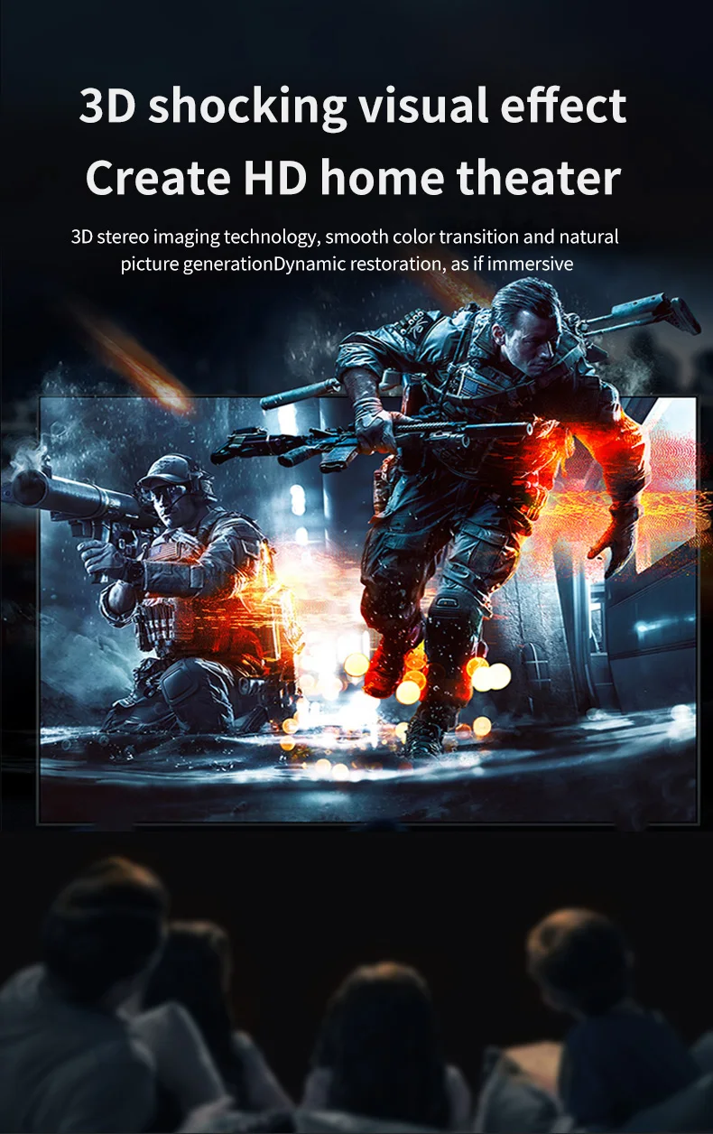 2.3D shocking visual effects, creating high-definition home theater, 3D stereo imaging technology, smooth color transition, vivid restoration of natural pictures, as if you were on the scene