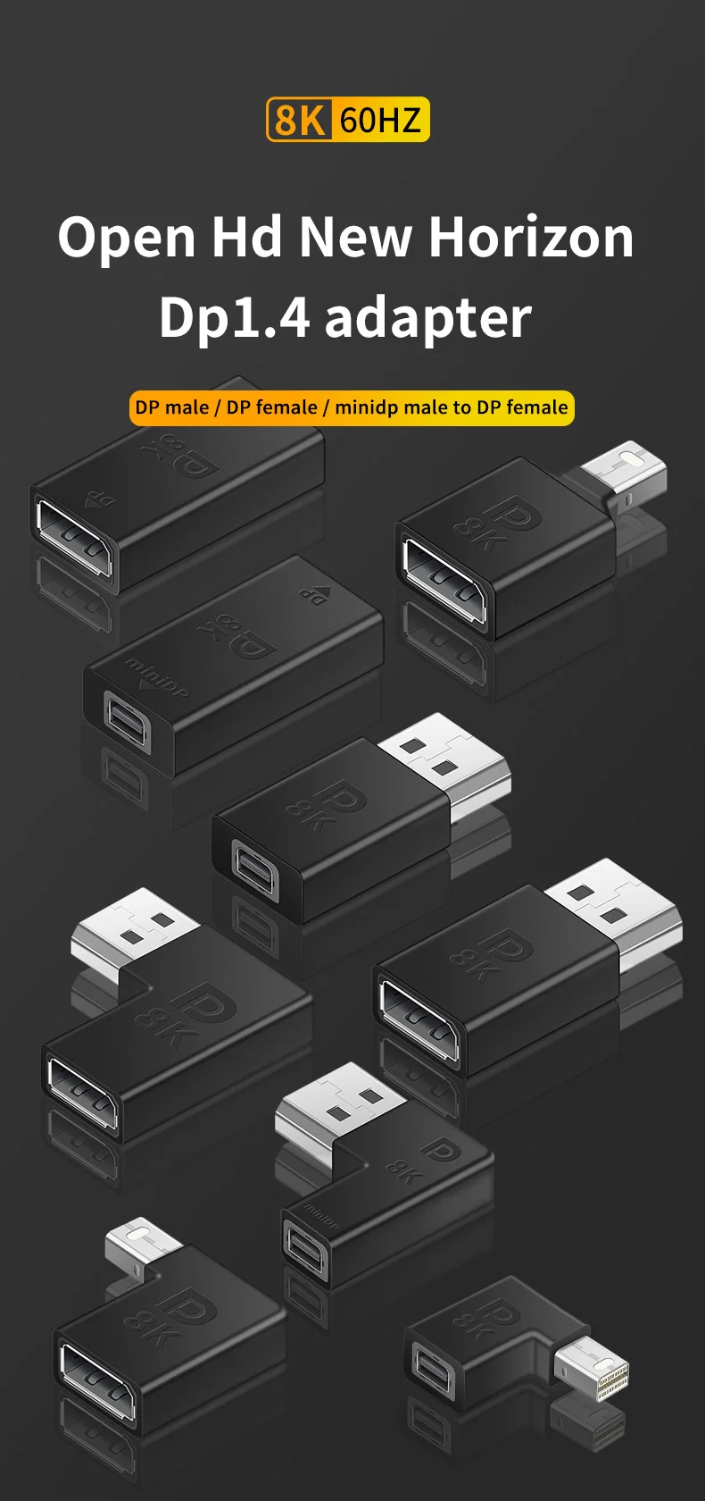 Interface options: DP female to female, DP male to female, MiniDP male to DP female