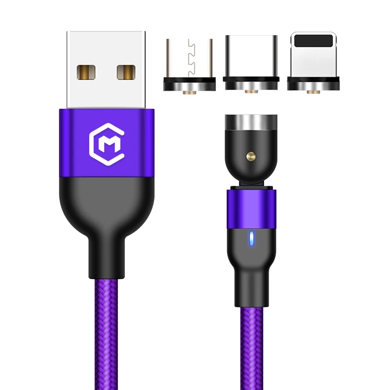 Best price 540 degree free rotation usb cables for 3 in 1 magnetic charging cables para iphone cable kabel data