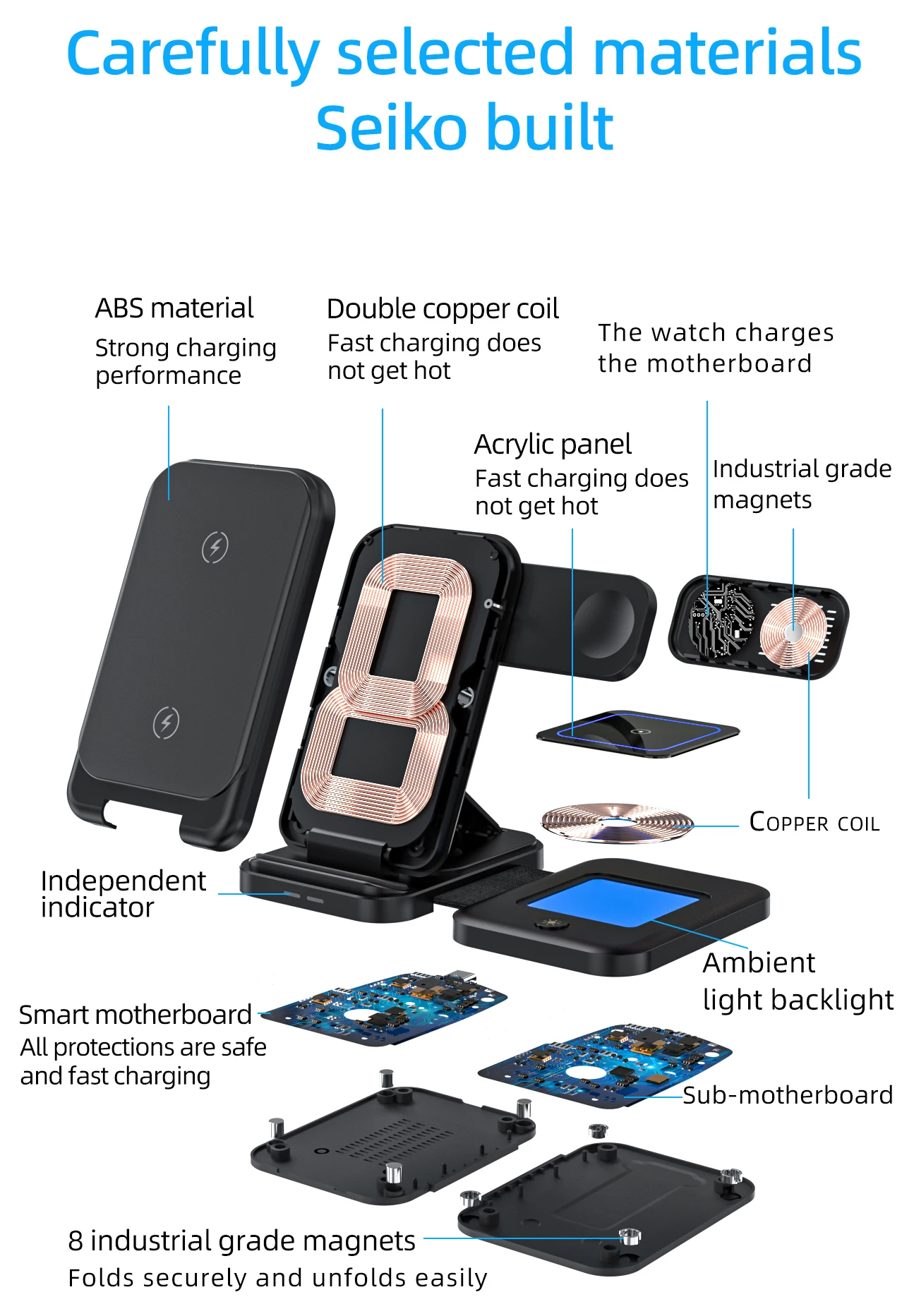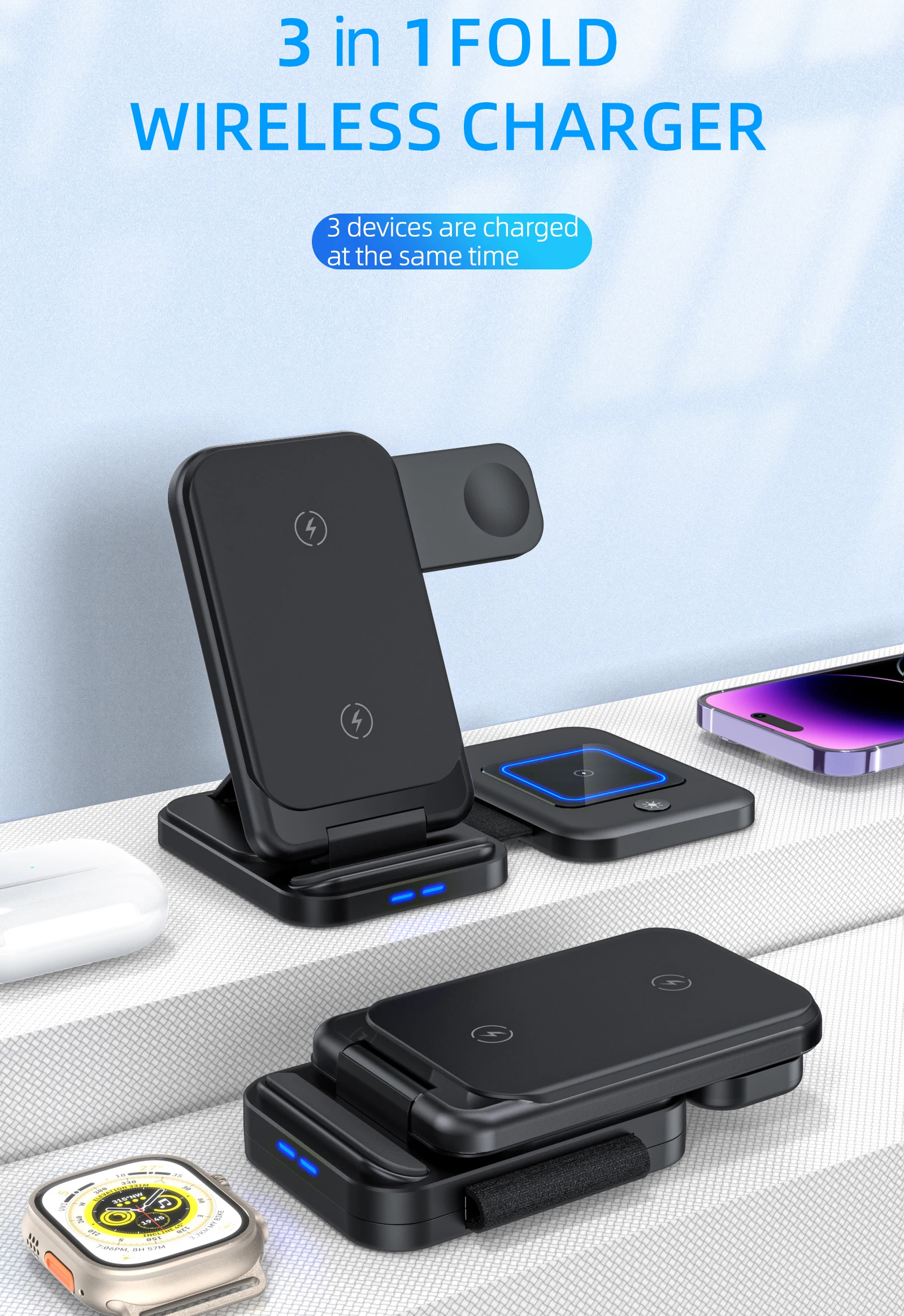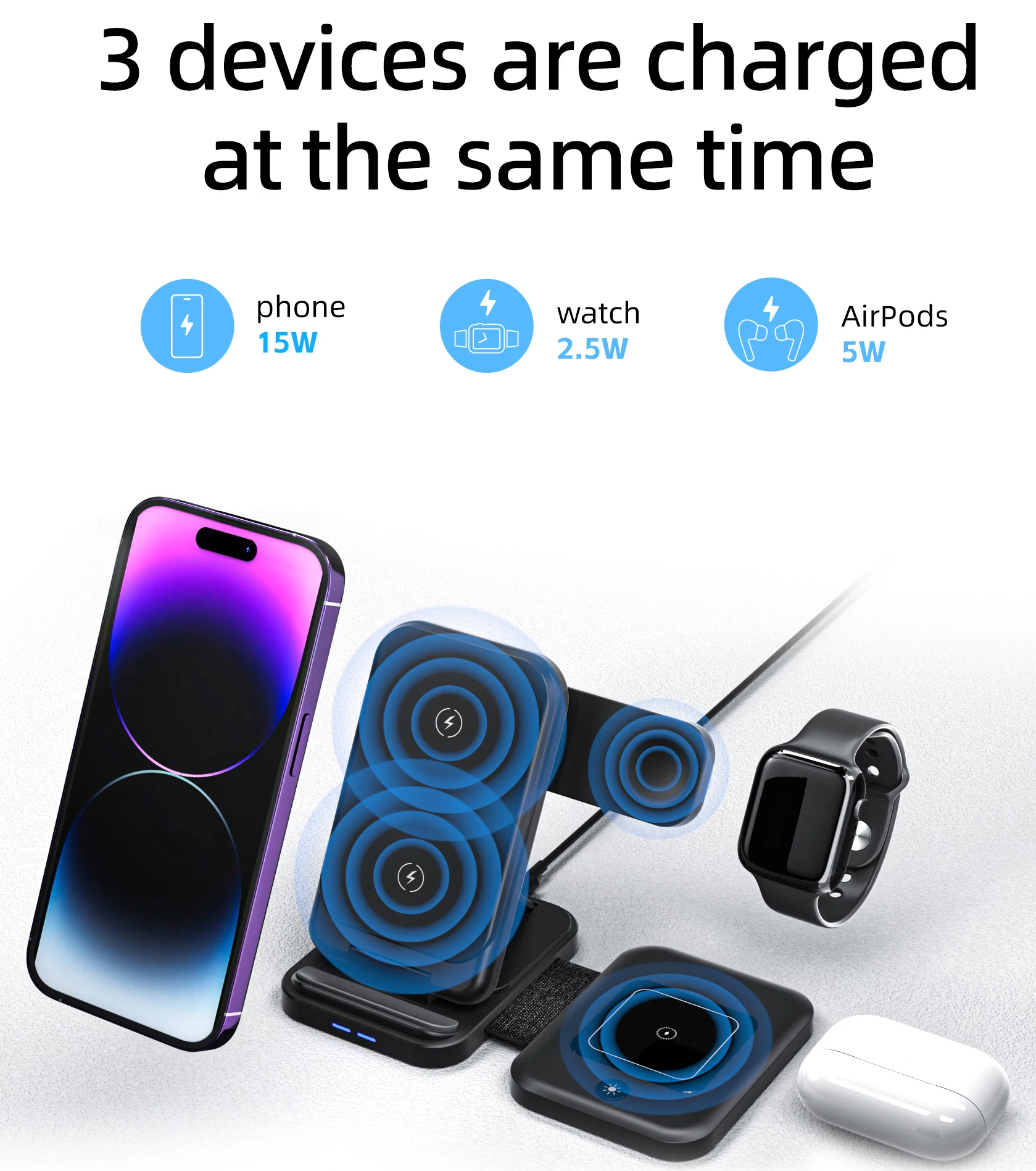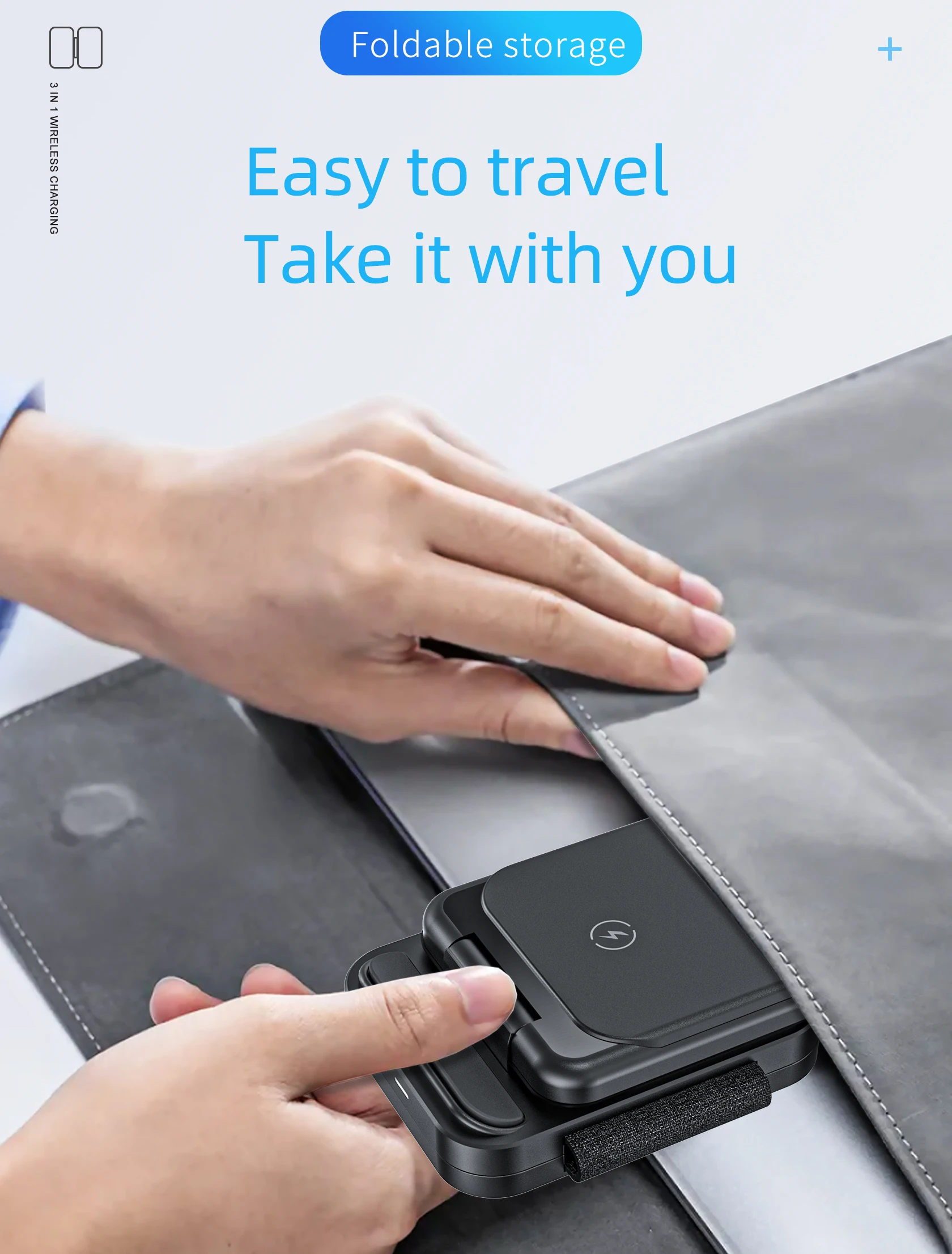 Wireless Charger, 3 in 1 Wireless Charging Station, Magnetic, Desktop Charger, Foldable, Support Qi