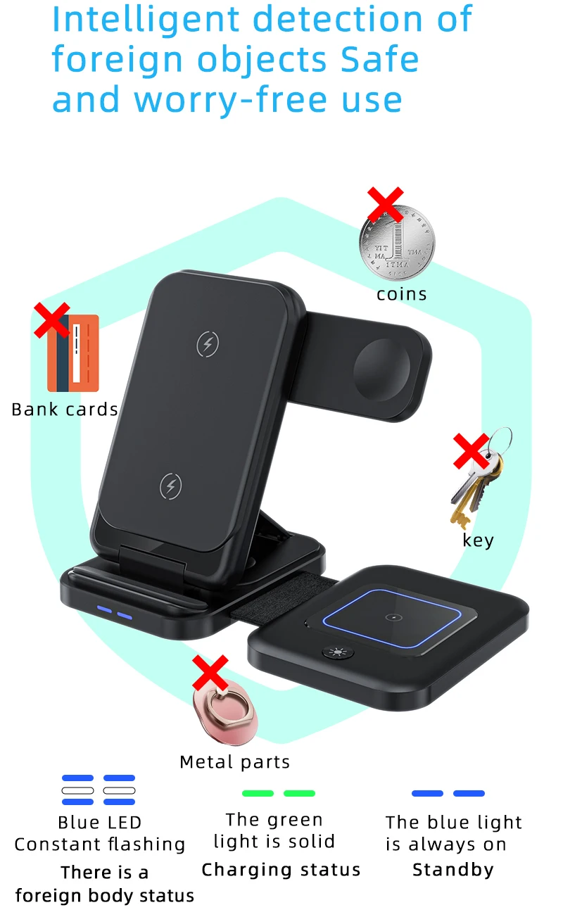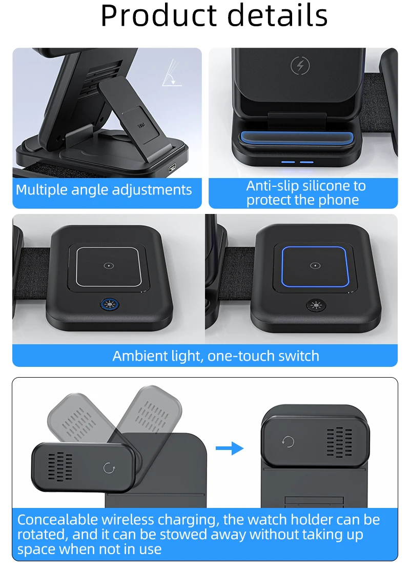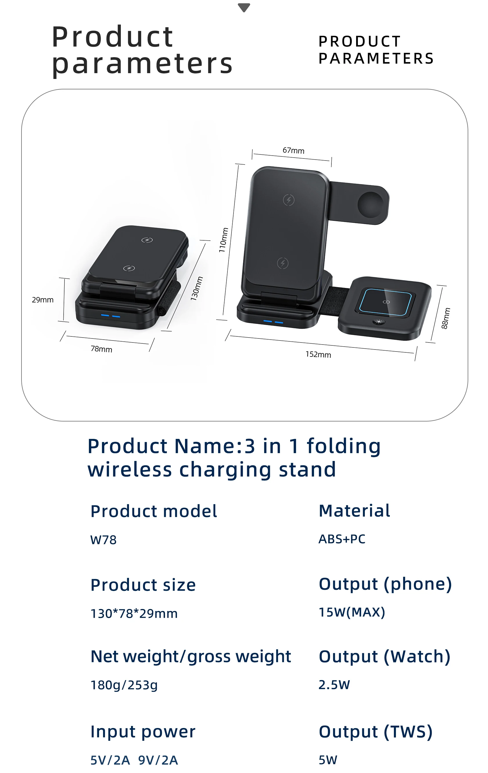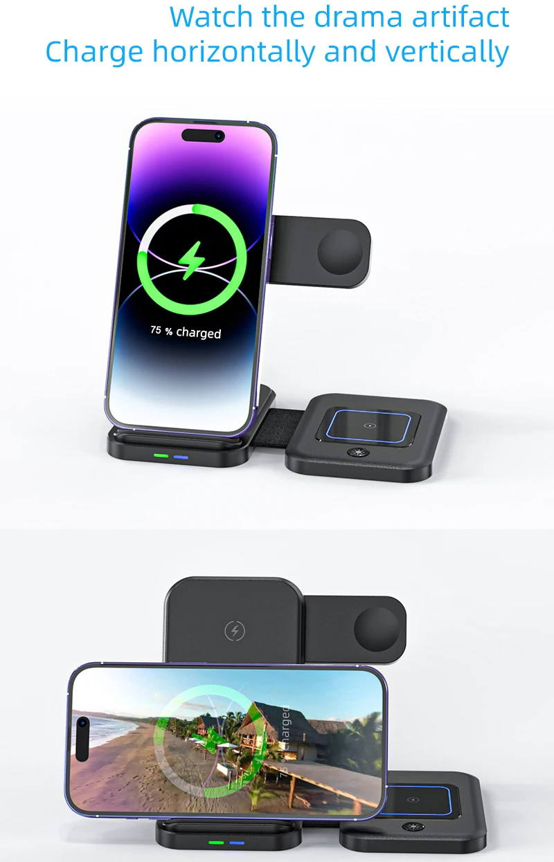 Wireless Charger, 3 in 1 Wireless Charging Station, Magnetic, Desktop Charger, Foldable, Support Qi