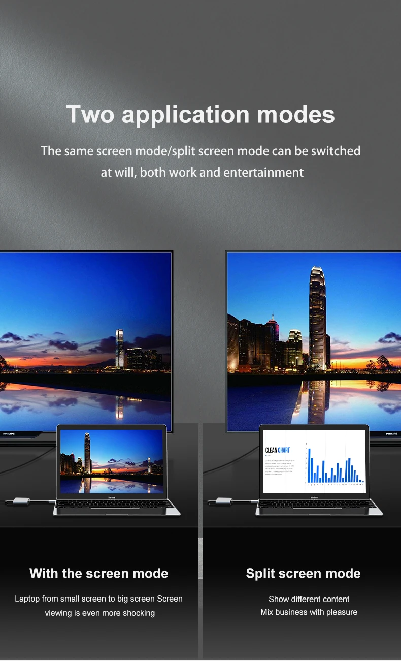 Comply with USB-C interface specification built in conversion chip. Plug and play.