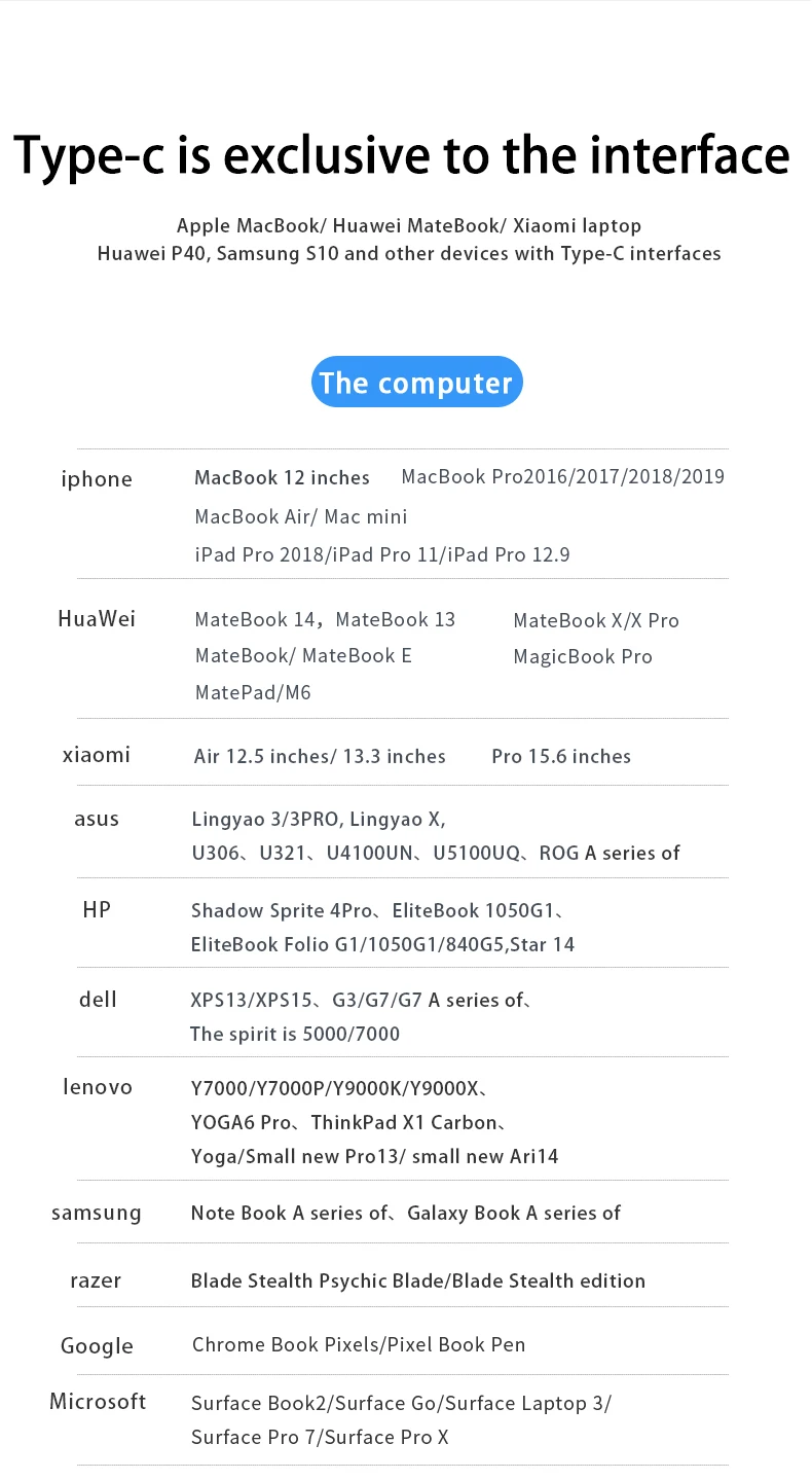 2.USB C male:compatible with thunderboil 3,Make sure that the host USB-C port on your device complies with the USB3.0/3.1 Specification;
