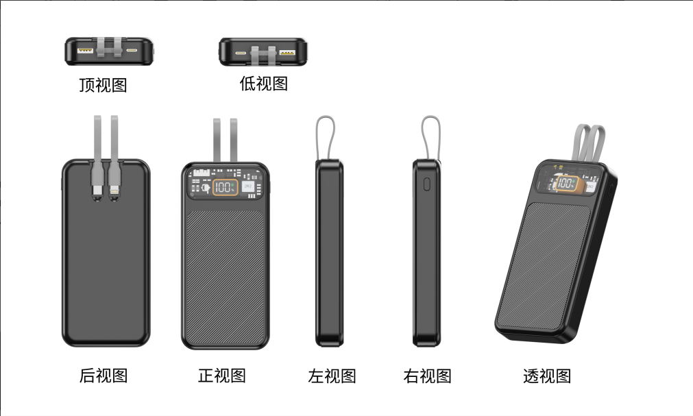 10000mAh Power Bank with plug USB Type C Micro cable LED white light Power display ABS 3 Cables portable charger with Holder