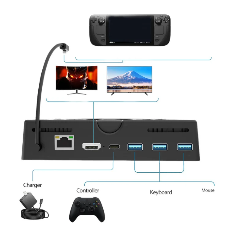 Steam deck dock 6 in 1 USB C Docking Station USB3.0 1000M 4K 60HZ For Steam Deck Console Charging Docking Station