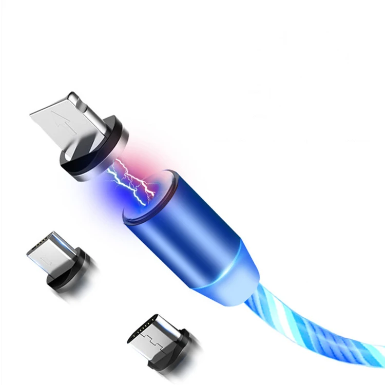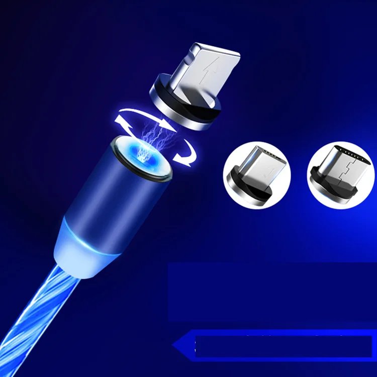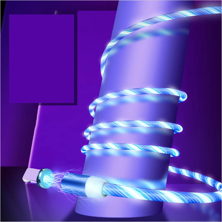 Led Flowing Light Usb Cable Fast Charge 3 In 1 Magnet Tipo C 540 Degree Rotate Magnetic Fast Charging Cable