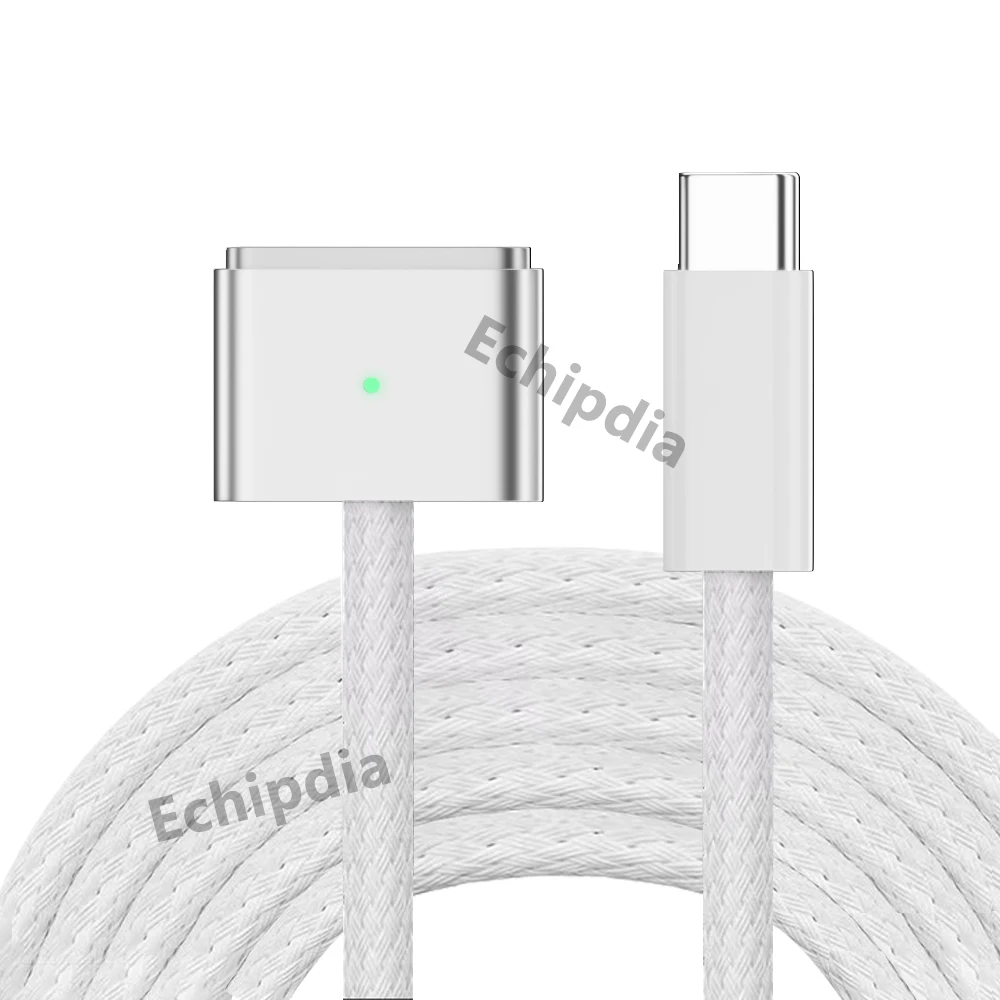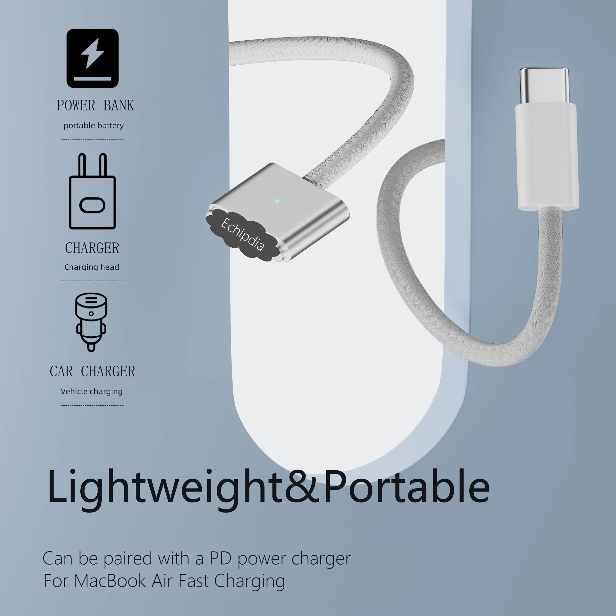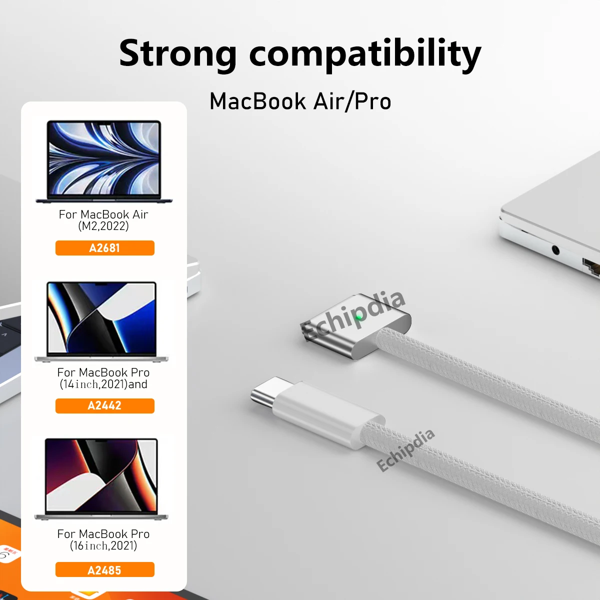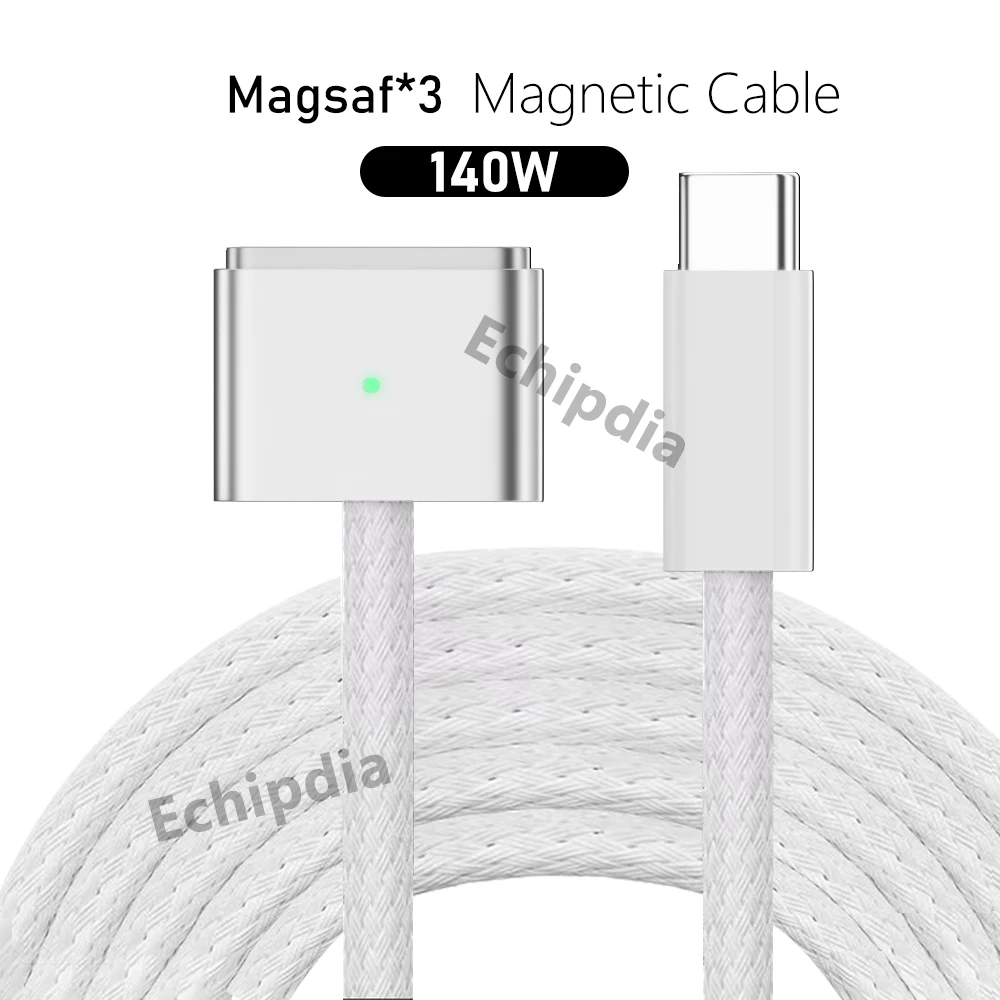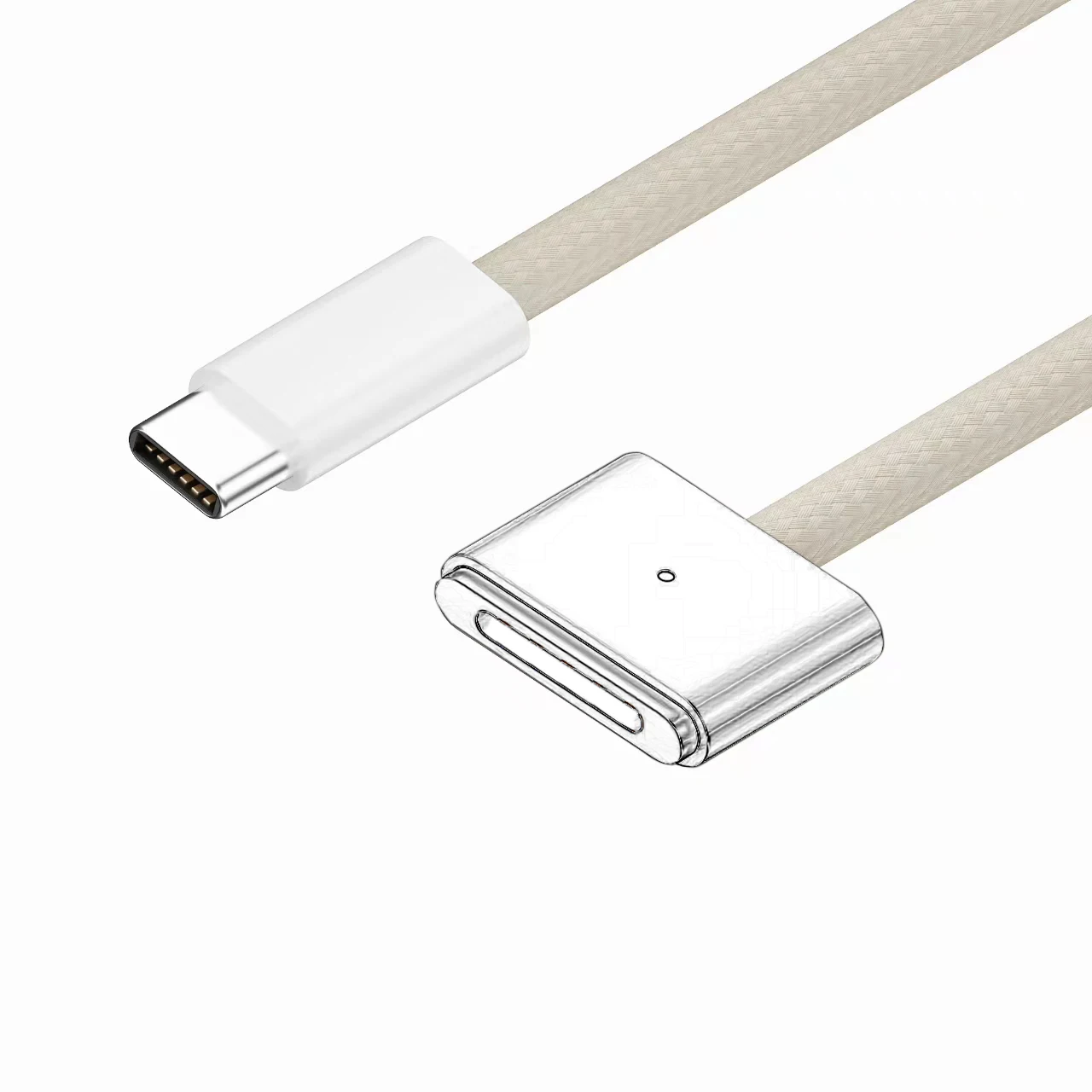 Magnetic Magsaf* 3 to Type-C charge cable 140W T head to USB C fast charging for macbook laptop 2m length Nylon