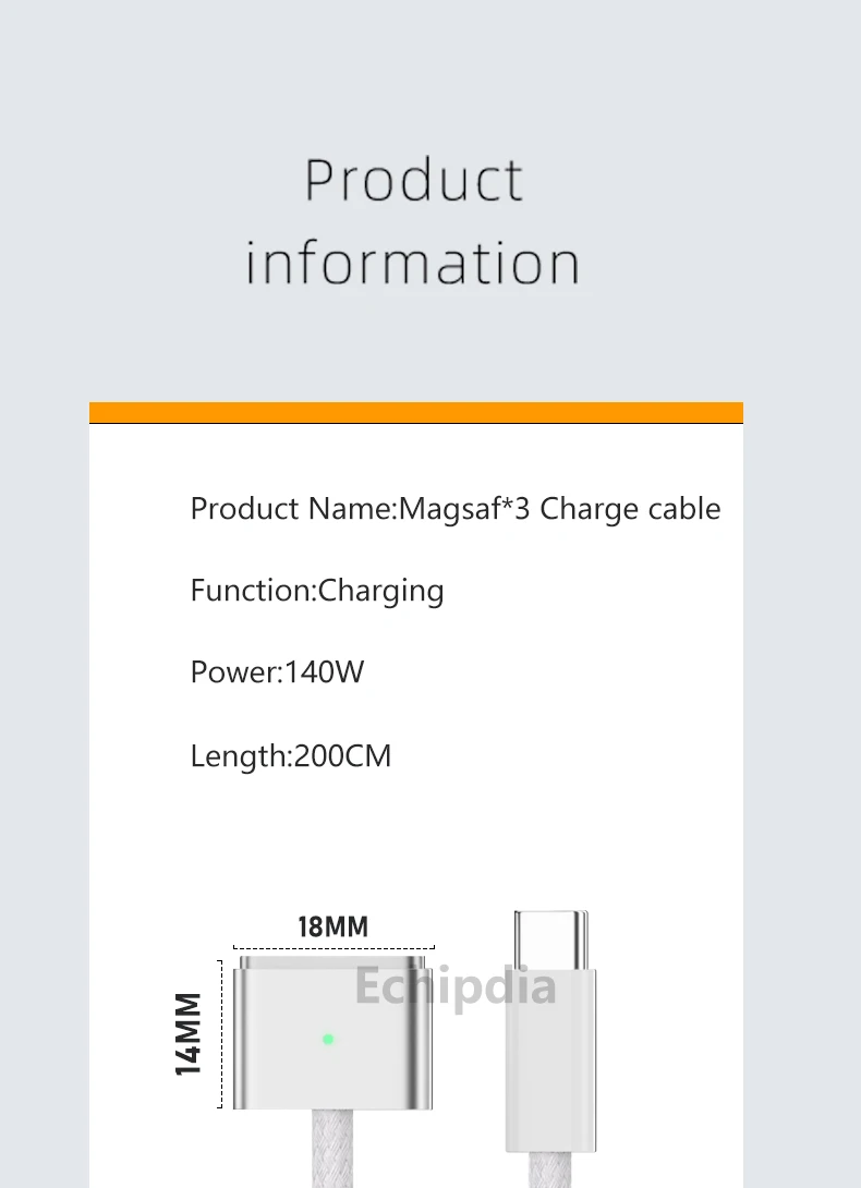 Be the first to review “Magnetic Magsaf* 3 to Type-C charge cable 140W T head to USB C fast charging for macbook laptop 2m length Nylon” Cancel reply