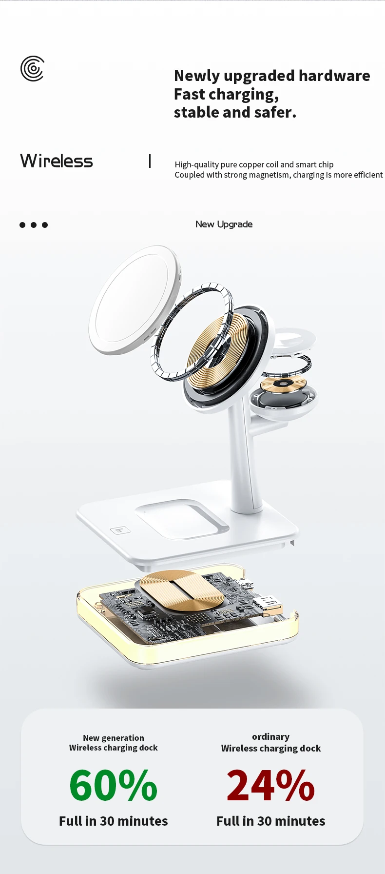 Multifunction 25W Mobile Cell Phone Holder Magnetic 4 In 1 Wireless Charger With Usb Charger Output