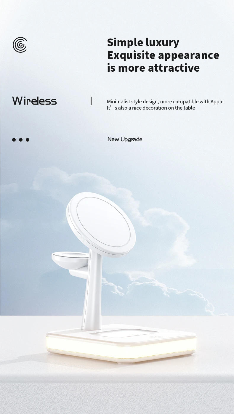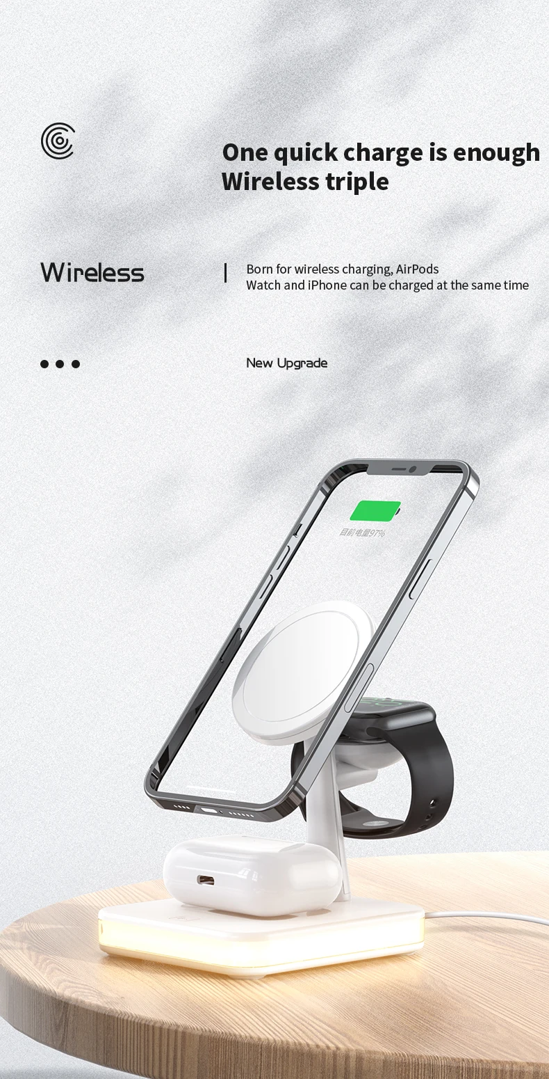 Cell Phone Stand Fast Quick Charging Station Custom 15W Qi Magnetic 3 In 1 Wireless Charger For Iphone Samsung Wireless Charger