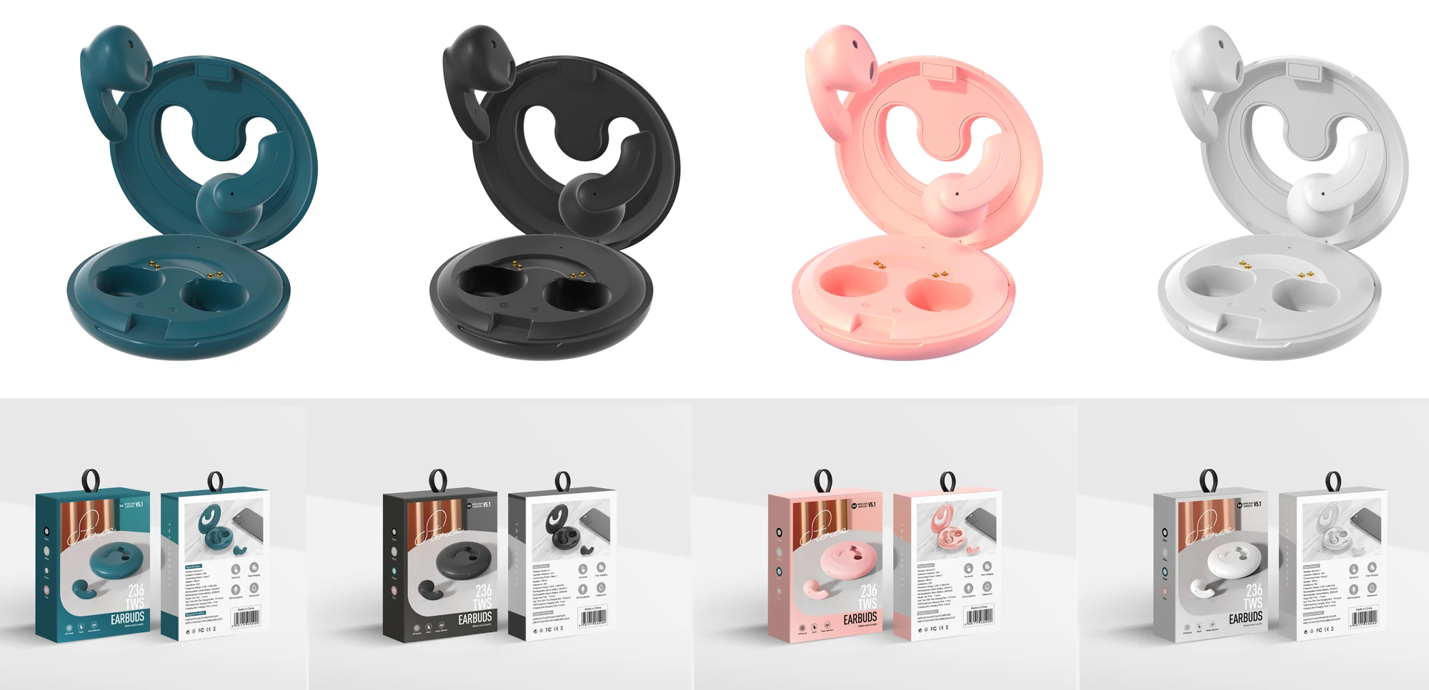 Wearable Earbuds Wireless Stereo Earbuds Cute In Ear Style Headset Portable Earphone