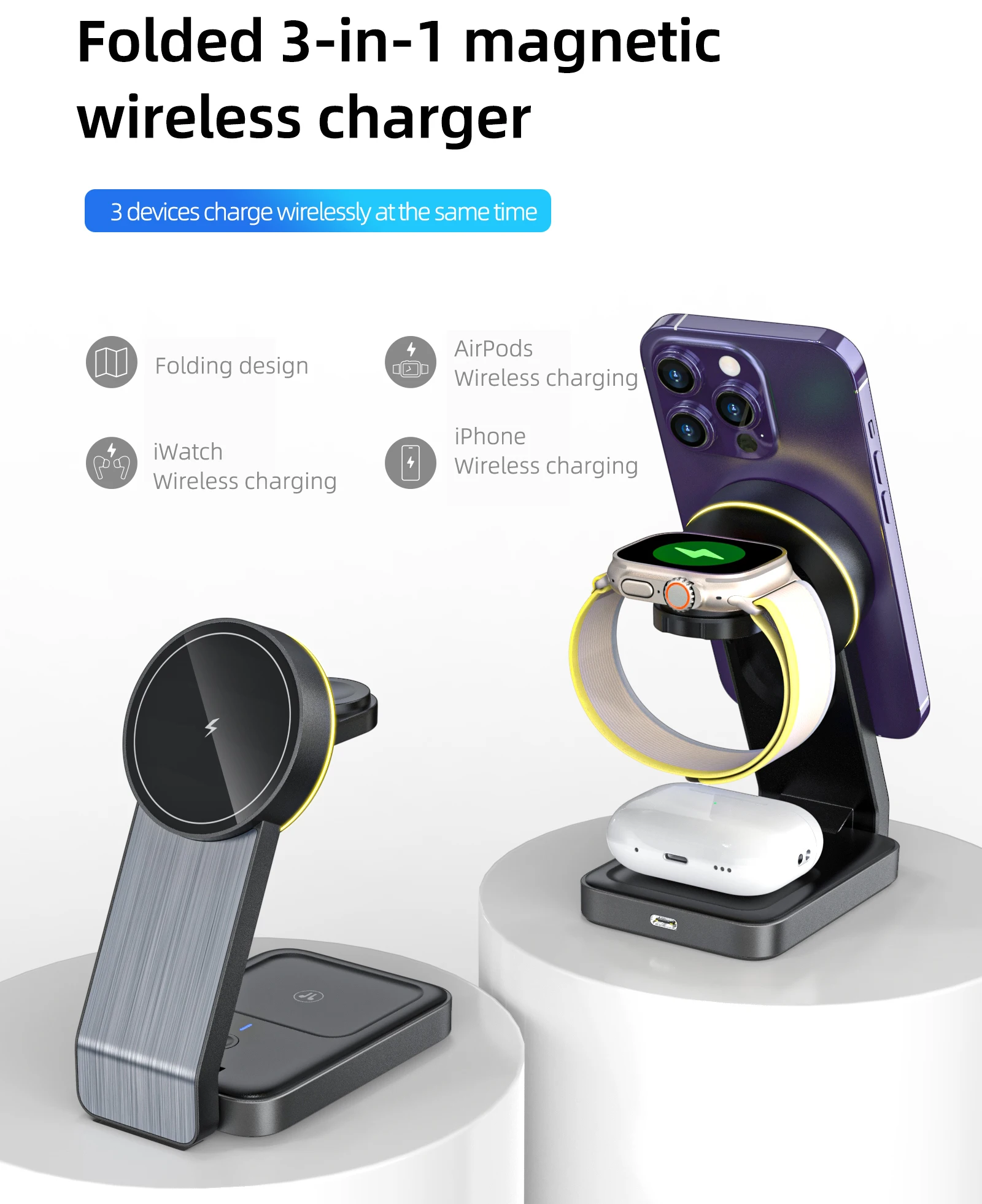 Magnetic, Wireless, Multifunctional, 3 in 1 Wireless Charging Station