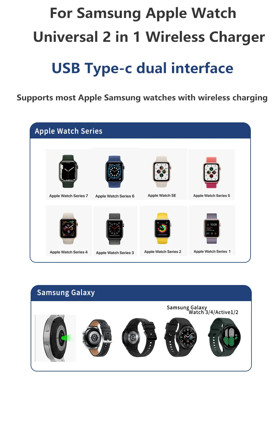 USB-A and USB-C interfaces Magnetic Wireless Fast Charging Smart Watch Charger For Iwatch Apple Samsung Watch Series 8 7