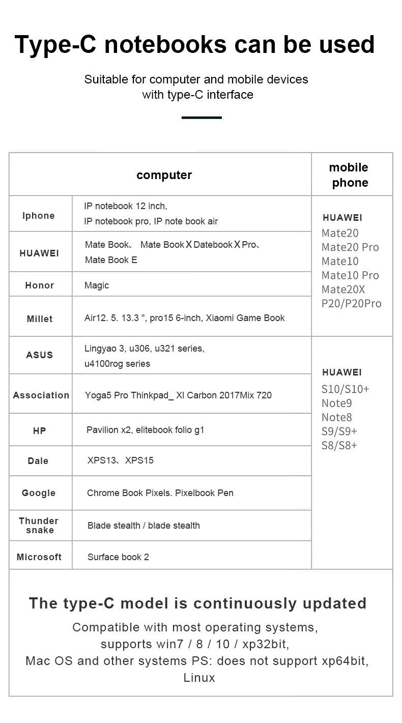 Comply with USB-C interface specification built in conversion chip. Plug and play.